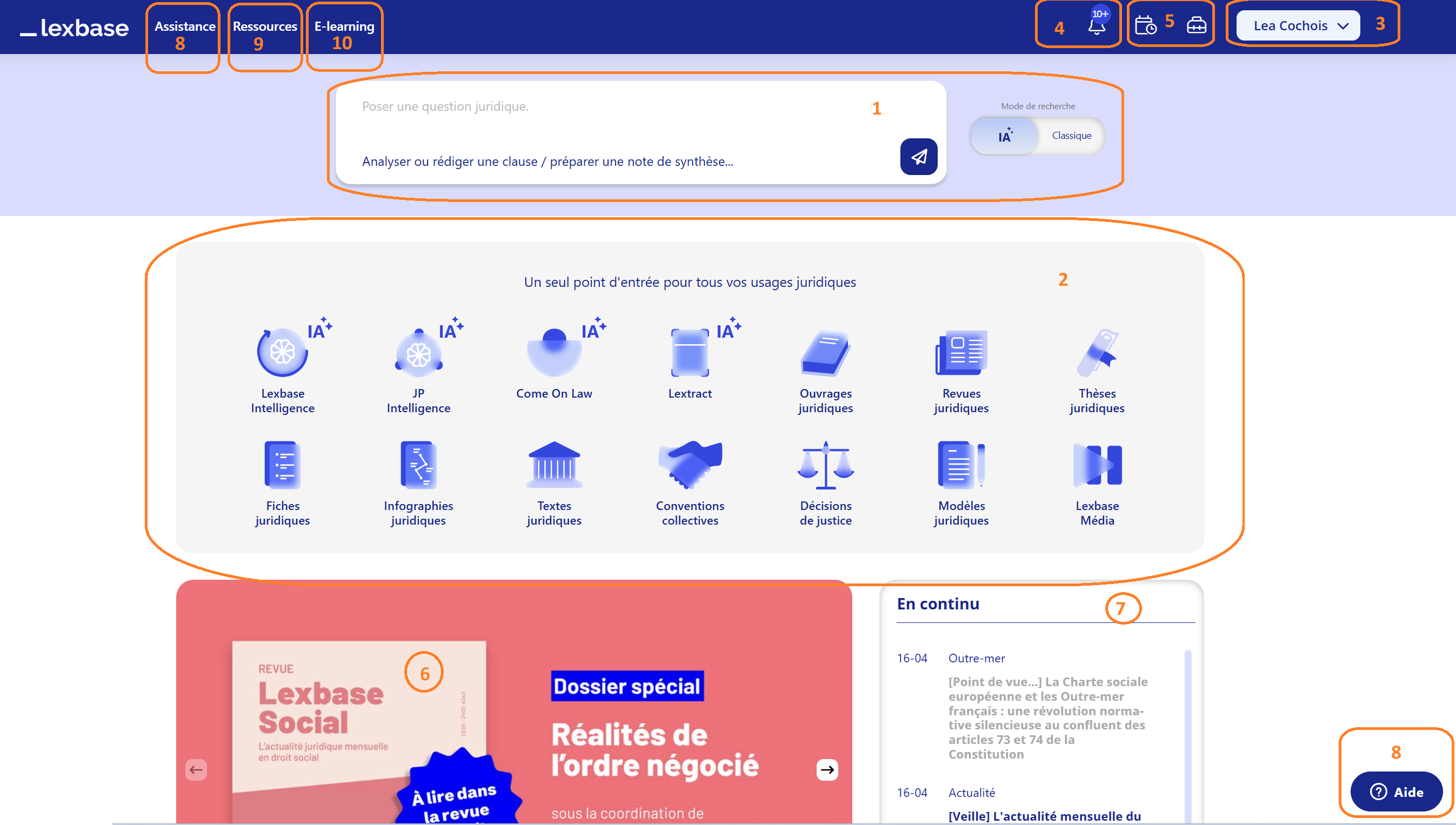 Cette page d'accueil est accessible à tout moment en cliquant sur le logo Lexbase en haut à gauche de l'écran.