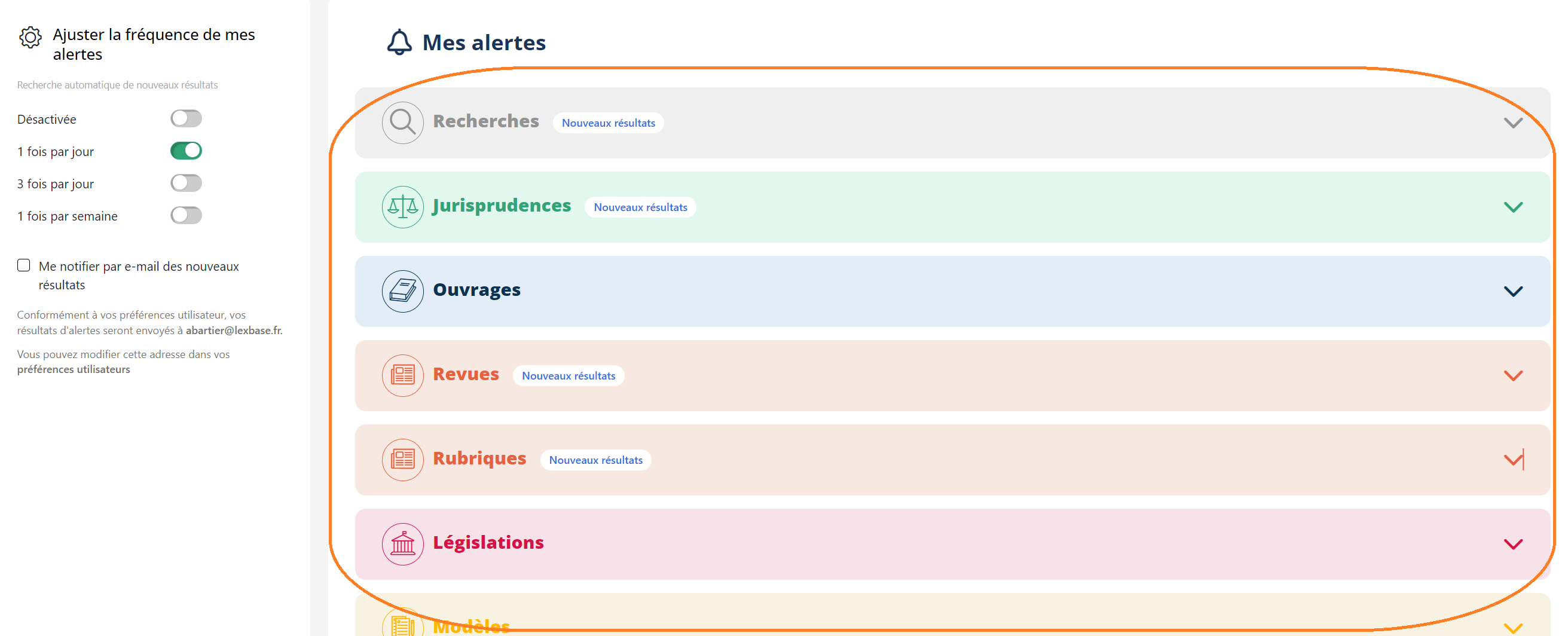 4- Alertes sur le plan de classement : Idéal pour suivre les dernières publications sur les juridictions de votre choix, ou pour être informé des dernières mises à jour d'ouvrages.